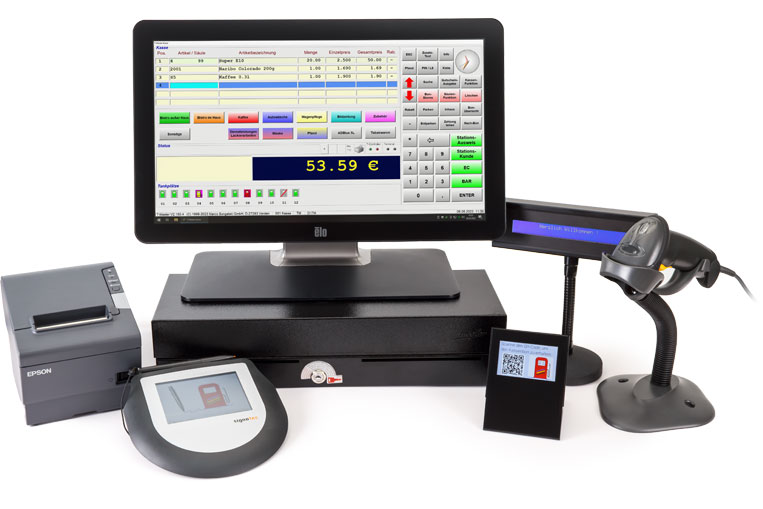 Der Kassenbildschirm ist übersichtlich und großzügig aufgebaut. Nur relevante Informationen sind sichtbar. Das gewährleistet ermüdungsfreies Arbeiten und die Aufmerksamkeit des Kassierers bleibt somit stets beim Kunden.