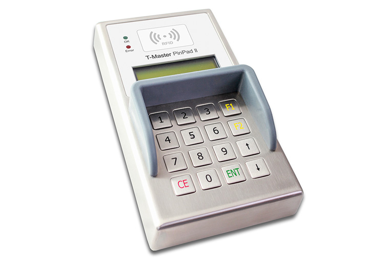 Mit diesem Pin-Pad können Transponder oder Transponderkarten schnell gelesen werden und Ihre Kunden können den Pin-Code direkt eingeben. Ein grafisches Display informiert stets den Kunden.